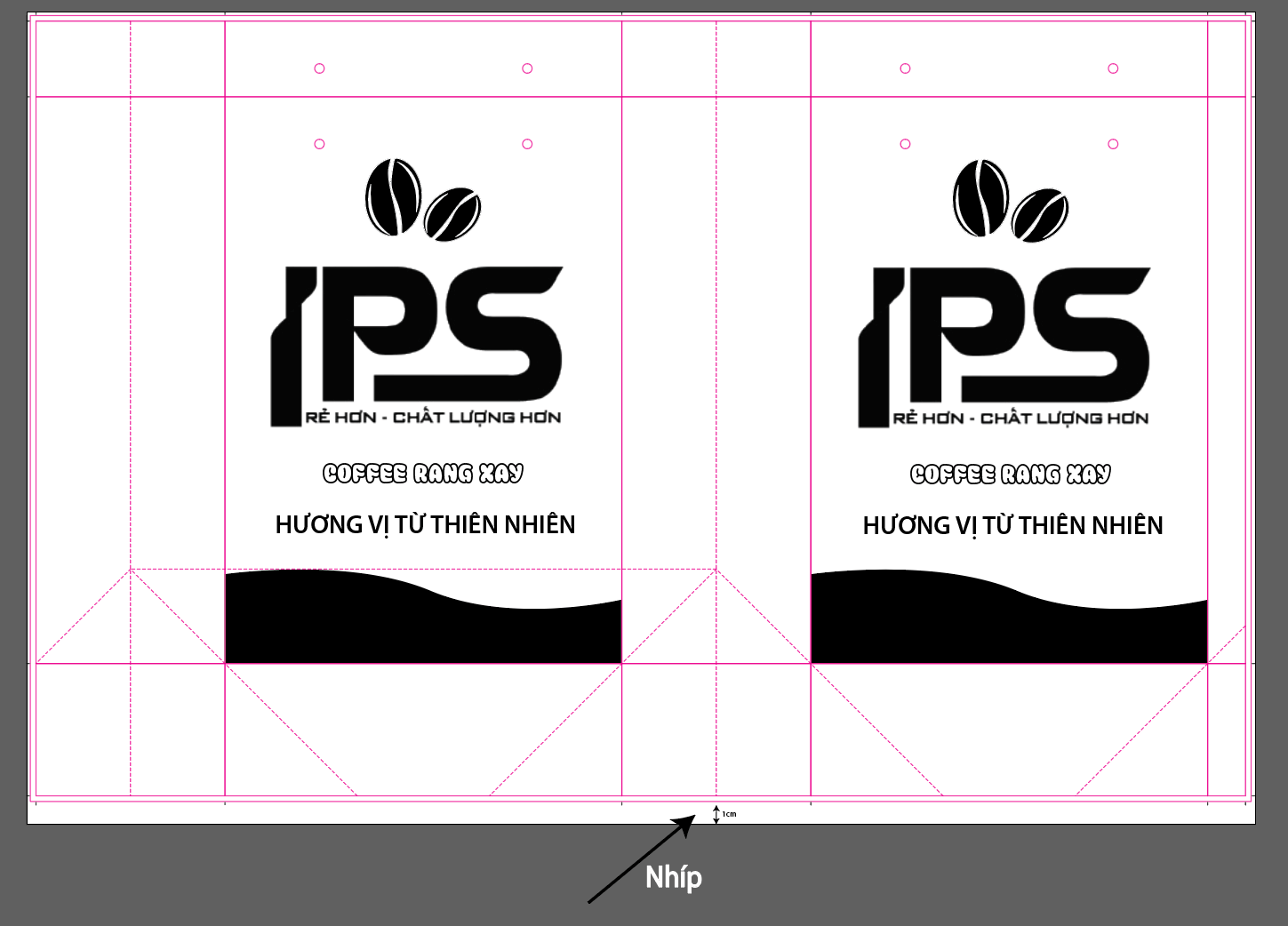 Nếu khổ giấy trừ 1 nhíp mà file túi bên trong không ảnh hưởng hay thiếu 1 đoạn kích thước khuôn túi thì file đó ok