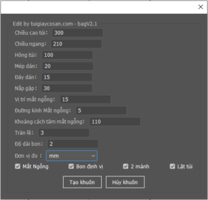 Hướng dẫn sử dụng Scripts tạo khuôn túi giấy Tiếp nhận thông tin kích thước...